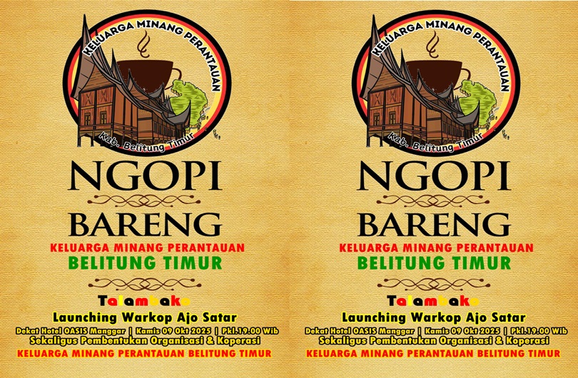 Okebozz.Com | JSCgroupmedia ~ Warkop Ajo Satar yang terletak di Jalan Tengah Manggar, Belitung Timur, akan menjadi pusat kegiatan bagi warga Minang Perantauan pada Kamis malam Jumat, 9 Oktober 2025.